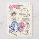 Invite your loved ones to a refined and celebratory Mother’s Day brunch with this exquisite vintage-themed invitation. The design features a graceful lady in a classic white dress with dark blue polka dots, complemented by a stylish blue hat. She elegantly holds two glasses of champagne, symbolizing a toast to the wonderful mothers in our lives. At the top right corner, a vibrant pink flower adds a pop of color, enhancing the invitation’s timeless charm.