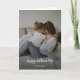 Simple, stylish custom photo Happy Mother's Day card with modern minimalist handwritten script typography. The photo and text can easily be personalized for a design as unique as your special Mom! The image shown is for illustration purposes only to be replaced with your own photo. The placeholder image is a young mom and daughter hugging each other on a bed both wearing white tops and jeans.