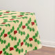 This awesome patterned tablecloth features a digital art image of a series of leaves from a houseplant called a Monstera, also known as the Swiss Cheese Plant. The leaves are dark green and lobed and some have holes in them. The plant pot is red and contains some brown soil.
