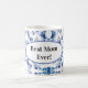 This ceramic coffee mug is shown with a lovely blue butterflies print design with a message for Mom..