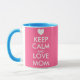 Mother's Day Mug | Keep Calm and love mom. Cute Keep calm and carry on parody cup with little heart. Pink and blue colors.