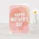 Designed with a calm, romantic softness, this card centers on the large headline “HAPPY MOTHER’S DAY” in white, set in a simple sans-serif style that stands out clearly. The words sit prominently in the middle, evenly aligned so the message feels steady and direct. Behind the text, gentle watercolor-like shapes spread out like loose floral clusters, suggesting a caring presence without showing any specific characters. Coral, blush pink, and warm peach tones blend into each other in soft gradients, like two close friends leaning together in a quiet moment ❤️. Some areas look lightly textured, as if faint brush marks were left behind, adding a cozy, touchable feel. The balance between the crisp white lettering and the hazy pastel background creates a tender contrast that feels affectionate rather than loud 🌼. Around the centered text, overlapping organic patches in coral, pink, and peach drift outward across the background with softly feathered edges.