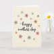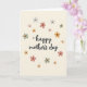 Designed with a calm, airy look, this Mother’s Day card centers the words “happy mother’s day” in a flowing, cursive-style lettering that feels like a gentle note from a close friend ❤️. The text sits in the middle of the front, set in a soft, medium-toned color that stands out clearly against the pale background. Around it, simple five-petal flowers are scattered to loosely form an oval frame, like a quiet bouquet gathered with care. The blossoms use muted shades of sage green, dusty rose, warm ochre, light blue, and creamy peach, creating a tender, affectionate atmosphere 🌼. Each flower has a slightly darker center that adds depth and a cozy, lived-in touch without looking heavy. The background stays light and parchment-like, letting the message and floral ring breathe with plenty of open space. Small leaf shapes and petal clusters sit unevenly around the oval, giving the border a soft, sketched look.