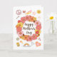 This unusual heartfelt Mother's Day greeting card is full of 1960s retro symbols: a pretty central floral wreath surrounded by a peace sign, hearts, a dove, etc., all in soothing hues of pink, yellow, brown, and orange. The inside text says, "Wishing you all the peace and love in the world on this Mother's Day and always."
