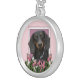 Mothers Day - Pink Tulips - Dachshund - Winston Silver Plated Necklace