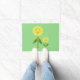 This awesome doormat features a graphic design image of a pretty yellow sunflower with a green stem and leaves and bright yellow sunflowers. The Mother sunflower has kind eyes and a smile on her face. There is a smaller sunflower next to the Mother flower and her leaf is touching the leaf of the child sunflower offering love and support. A beautiful design for any Mother on Mothers Day.