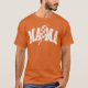 My 11 yo wore adult XL (5’7” 165#). The 8yo is small framed. She wore adult small and tied it in the back. Grandma wore adult large with long sleeve shirt underneath. Tall girl adult medium. Dark haired male adult large. Good quality dark Heather gray, Gildan brand shirt. -it was next up from basic choice and cost about $20 per shirt. Not too thick or thin. Washed and dried well, no major shrinkage. Not see-through. Can wear a bra under it fine. Screen print is just as shown and well done, front and back.