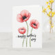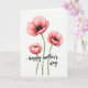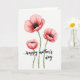 This card features three soft, watercolor-like flowers floating on a wide white background, arranged so they seem to lean toward one another like close friends ❤️. A larger blush-pink bloom sits near the upper right, with two smaller blossoms tucked below and to the left, creating a gentle upward flow. Each flower has petals that fade from deeper pink near the center to a lighter edge, giving them a tender, airy look. Dark, fine stamens in the middle of each bloom add contrast and draw your eye inward, like a quiet shared glance. Slender green stems rise at slightly different heights, with light texture that suggests a natural, hand-drawn touch. The words “happy mother’s day” appear in the lower center in dark lettering, standing out clearly against the white space 🌼. The stems angle upward beneath the text, and the top flower’s petals open widest toward the upper right corner.