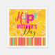 "Happy Mother's Day" reads the colorful text on these yellow damask napkins. A border with a white scalloped edge and multicolored stripes of orange, pink, blue, red, green and white is below the text. Perfect for a Mother's Day celebration!