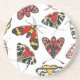 Pleased with the overall quality of this type of coaster. I bought a set of these and each one was packaged carefully in bubble wrap to protect from breakage. The coasters are very classy looking and fun to use. I would recommend to anyone. Printing is less bright than on other products such as say, magnets or mugs, but that's to be expected given that they are printed on sandstone. Somewhat dull, but true to how the product is represented on the Zazzle website. I am pleased with the quality and would order again. Would make a great gift.