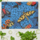 Moths on blue hydrangea kitchen towel