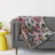 Moths on flower mix in pink and gray throw blanket