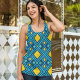 Geometric Diamond shape abstract background with Bright yellow and blue seamless pattern. Dark and Lite blue backgrounds highlighted with bright yellow Shapes. Try out this tank top and share your feedback with us.
