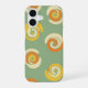 Motif rétro de spirales stylisées de chou romanesco sur fond vert doux.
