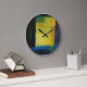 This original abstract painting is painted by me and signed in front, green , yellow, blue abstract art painting on clock.