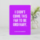 Stand out with every word. This empowering pink card features the bold message: “I didn’t come this far to be ordinary.” — a perfect reminder to chase dreams unapologetically. Whether you're cheering on a graduate, celebrating a milestone, or surprising a friend who’s leveling up in life, this custom card makes an unforgettable motivational gift. Personalize it inside with your own message for a truly meaningful touch.