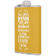 Well made flask, a little better than I had expected. Flask came in clear plastic box which gave it a nice presentation when I took it out of the zazzle packaging. Image is not printed on flask but on sticker. Don't know how this will hold up I haven't used it yet. This would make a Great gift! I plan to purchase more for friends! Cheers. I thought a little brighter than computer. Very crisp, writing wasn't