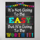 It's Not Going To Be Easy, But It's Going To Be Worth It Classroom Poster. Great for Teachers and Classroom Decor! A cute way to add personality to the classroom, counselor office, social worker office and more!