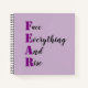 Put a positive spin on fear with this inspirational Face Everything And Rise notebook! Write down all of your good thoughts and send fear packing!! You can customize the background color of the product and the color of the text to fit your preference.