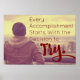 Every accomplishment starts with the decision to try. Motivational inspirational poster. Photo of man looking out onto scenic view deep in thought.