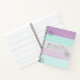Personalized notebook for all your thoughts and ideas. The design has a color block stripe in colorful saharan color palette with trendy abstract doodles and a motivational quote. The quote reads "keep going until you own it!" and is lettered in typewriter text and elegant script. You can also add your name which is lettered in casual handwriting style. This striped pattern is lilac purple mint green and grey. Please browse my store for coordinating items or alternative colors.