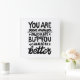 Black and white lino print of a motivational quote that says "You are good enough, but you can always be better". Offers encouragement for people to know that self-acceptance and growth go hand in hand.