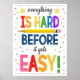 A great poster to hang in a classroom, school guidance counselor office, school social worker office, child therapist or child psychologist office to remind kids that new things are hard, but it gets easier! A great reminder to boost confidence, stamina, positive outlook and participation in the classroom.