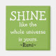 A motivational quote magnet with Rumi's inspirational words"Shine like the whole universe is yours". The green color background is the latest 2017 home decor color.You can also customize the background color to your own choice .