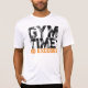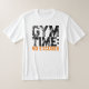 A t-shirt with the motivating slogan "Gym Time No Excuses" in black and orange bold grunge text typography.