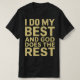 This motivational t-shirt design encourages you to give your all and trust the outcome while maintaining a positive outlook. It reads "I do my best and God does the rest."
