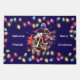 A rectangular doormat with a blue background, featuring a vibrant and dynamic illustration of a motocross rider mid-action, splattered with colorful abstract paint. The mat is bordered by a string of multi-colored Christmas lights, adding a festive touch. The text "Welcome Friends" is written on the left side and "Merry Christmas" on the right, making it a cheerful and welcoming holiday accent.