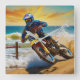 Motocross Racer at Beach Race Square Wall Clock