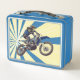 This is a standard metal lunchbox that appears to work just fine. We designed this box ourselves with an uploaded photo and custom text on the front and back. It looks absolutely beautiful except the front of the lunchbox is not centered like it shows in the photo. The print borders don't align with the inset flat part of the box where the preview photo online showed it perfectly centered in there. The back looks nice and centered though.