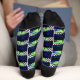 This fun Halloween socks are bright and colorful. The small print is crisp and shows the fun details. The softness of the socks feels nice on my feet and ankles. .