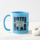 Motor head in broken text around an engine is a humorous gift design for auto mechanics, machinists and vo-tech students.