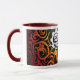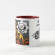 Maroon and White coffee mug with Awesome Gear Head and flaming Chopper...