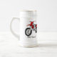 This stein features two graphic pictures of red dirt bike motorcycles. There is a customizable spot for your name or a short message.