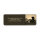 This address label features a silhouette couple riding a motorcycle with a mountain sunset or sunrise background.