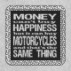 "Money can't by happiness but it can buy motorcycles and that's the same thing" typographic quote design for bikers.