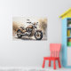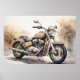 Poster of a classic motorcycle. Earth-toned foliage in the background adds a warm, rustic ambiance.