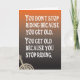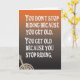 Motorcycle quote "You don't stop riding because you get old. You get old because you stop riding" for biker birthday. Orange and black fade background with vintage bike silhouette graphic. Customize message inside if you like.