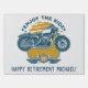 The perfect party sign for the retiree who loves his motorcycle. With a retro motorcycle and the funny saying, "Enjoy the ride" it's the perfect way to celebrate your retirement.