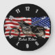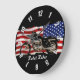 Motorcycle & US Flag Design Large Clock