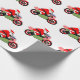Motorcycle Christmas holiday gift wrap featuring racing Santa Claus motorcyclist design for your favorite biker.