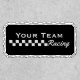 Racing ribbon with black and white checkered design followed by Racing in script font. Personalize with your name or team name in uppercase white font. Set on solid black background.