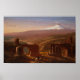 From the hillside town of Taormina, the majestic cone of Mount Etna smolders in the distance, framed by Mediterranean architecture, cypress trees, and soft morning light. Smoke curls upward into the blue sky while the ruins of ancient theaters echo history across the valley. A fusion of natural grandeur and classical beauty.