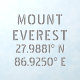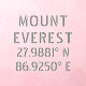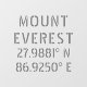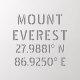 Wall decal features latitude and longitude for Mount Everest, Nepal in grey, modern stencil font