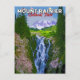 Beautiful Mount Rainier national Park artwork showing a beautiful landscape watercolor picture. The national park is surrounded by valleys, waterfalls, and subalpine meadows.