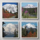 Beautiful a wall with this peel and stick, framed photo tiles that feature scenic, photographic images of different landscape views of majestic Mount Rainier as viewed from within Mount Rainier National Park, Washington. Select your number of prints and size as well as frame color and other options.