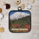 Safely handle baking trays, cookie sheets and casseroles from the oven with this pot holder with black trim that features a scenic, photographic image of snow capped Mount Rainier and autumn color in the great Pacific Northwest state of Washington. Makes a great travel souvenir gift! Select your pot holder backing style.